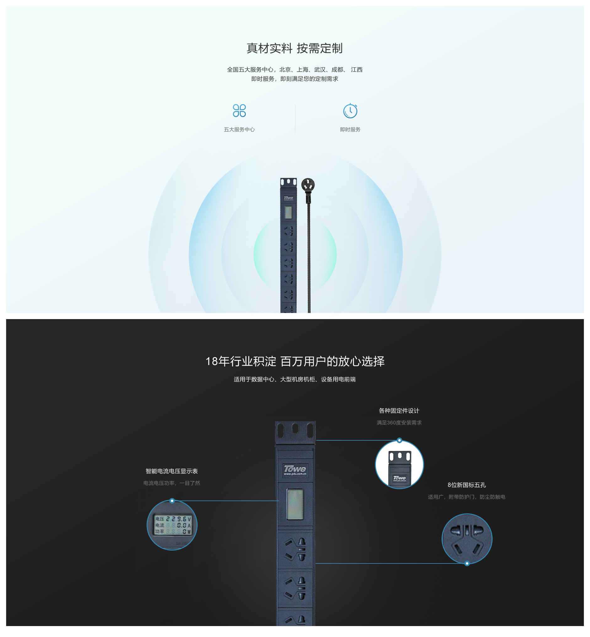 清晰的电流电压显示表,一目了然;8位新国标五孔附带安全防护门,防尘防触电;产品应用于数据中心、电脑机房、服务器机柜、配电机房、金融机构、通信企业等行业。产品安全、可靠、专业,使机柜环境整齐、美观、并使机柜的电源维护更加便利。产品具有多种功能,丰富的功能模块供用户选择。